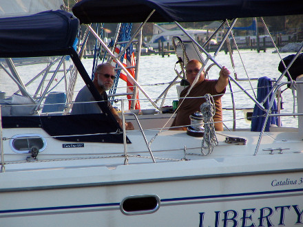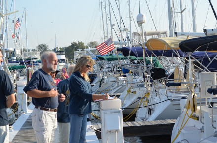 The Columbus Day Weekend cruise starts in Rock Hall, MD on a Friday evening. Itinerary for the weekend (Saturday - Monday) usually includes docking for an evening at Baltimore Inner Harbor, Annapolis or St. Michaels (and a nice hot meal), and spending an evening with the boats rafted up together at a quiet anchorage. The Saturday morning departure readiness always starts with a checkout by Jacki, from Haven Charters in Rock Hall, MD.